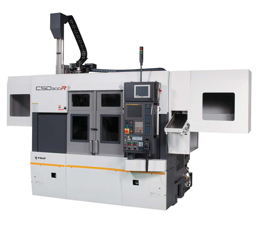 TheCSD-300R Twin Spindle Lathe features live tools for the fastest part-to-part (takt time) in its class. These parallel twin spindle CNC lathes include both Z- and X-axis box way slides for heavy cutting, superior surface finish and longer tool life.
