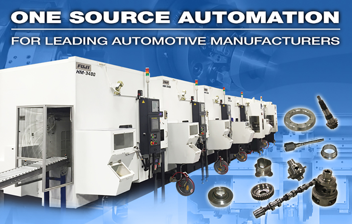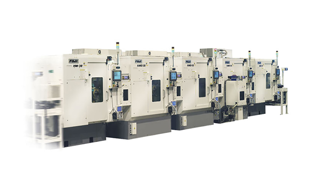 Fuji's line flow examples consist of systems that are customized to meet your exact manufacturing demands. Fuji engineers first learn all they can about a customer's application and then provide the best engineering solution. Based on decades of experience and a commitment to reaching process perfection, using robot-integrated machine tools, our solutions support a lean manufacturing approach. This approach dictates that all operations are coordinated to produce a completed part, and that product is ready to be shipped as close as possible to when the costs of manufacturing are incurred. Fuji self-contained automation makes these line flow machines ideal for re-tooling, for use as stand-alone units or to perform in varying combinations.